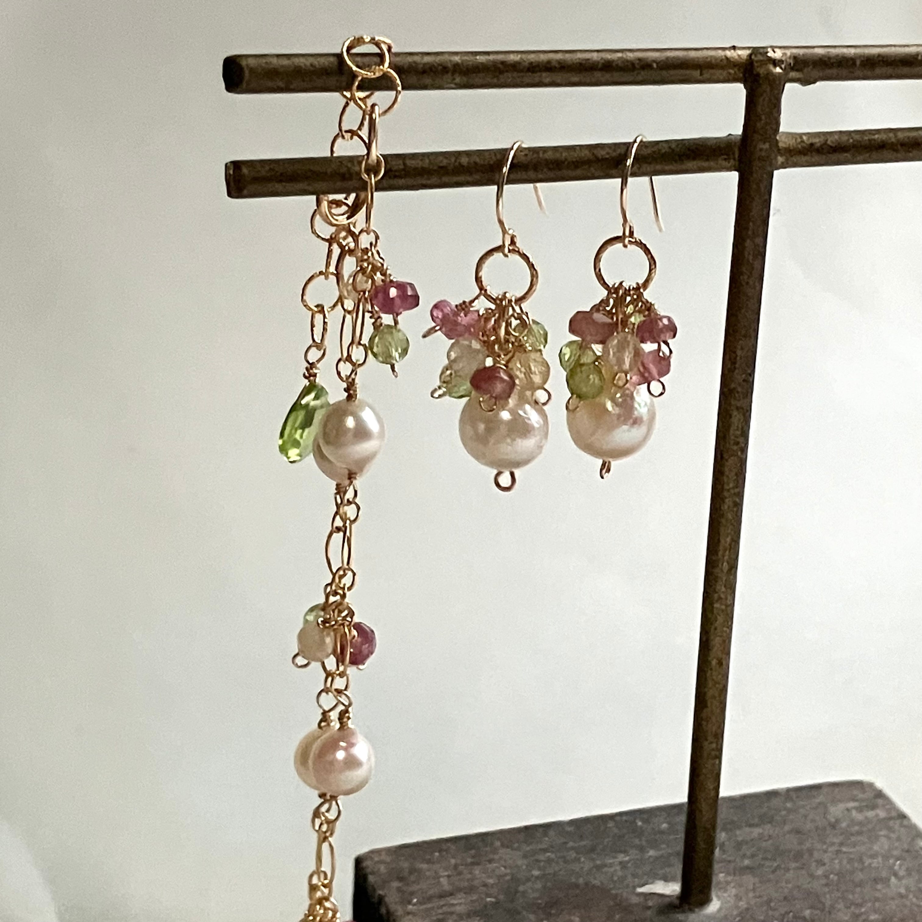 あこや真珠の上品な光沢、ピンクトルマリンの優しい色合い、ペリドットの鮮やかなグリーン、シトリンの明るいイエローが、それぞれ春の訪れを象徴し、あなたのスタイルに華やかさをプラスします。春のコーディネートにぴったりなこちらのブレスレットを、ぜひお楽しみください。
