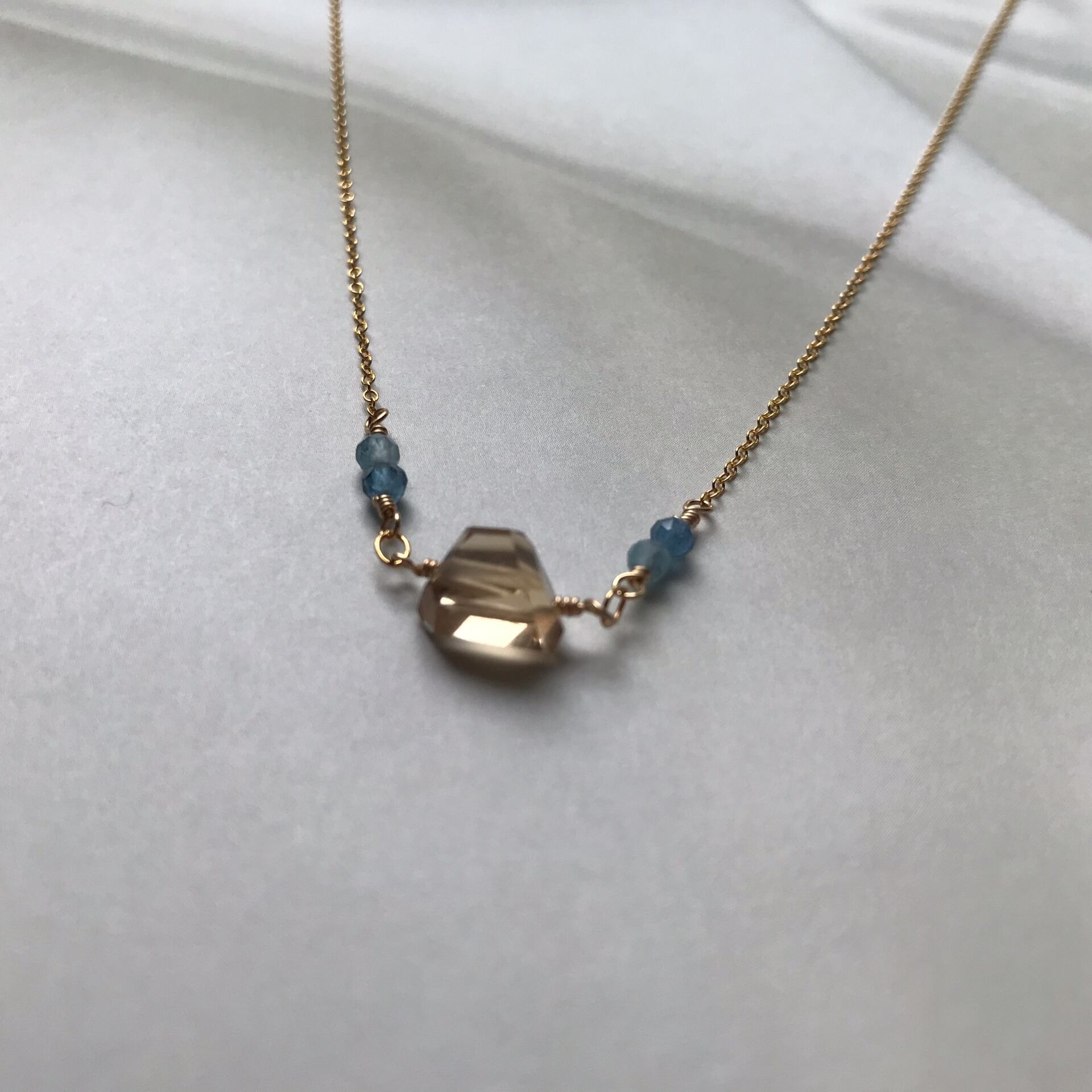 シャンパンクォーツとディープブルーアクアマリンのネックレス