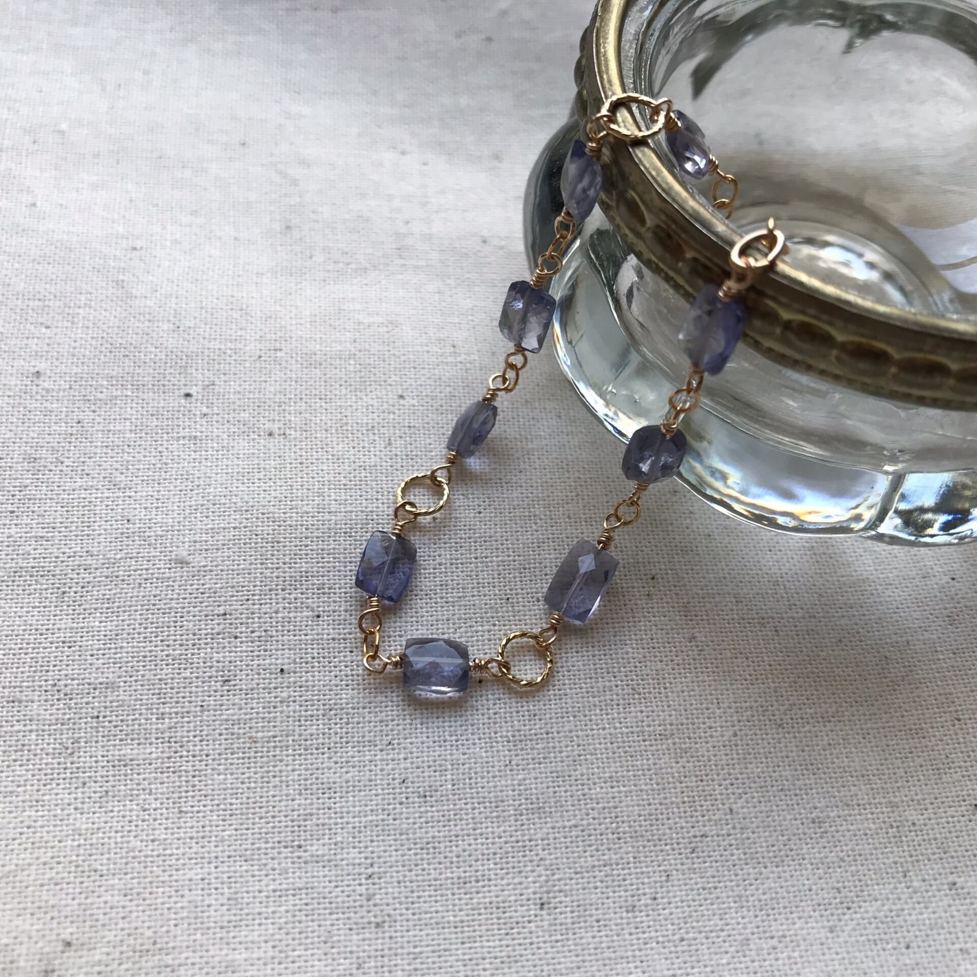 アイオライトのレクタングルカットのブレスレットは大人っぽく上品な印象を与えます。